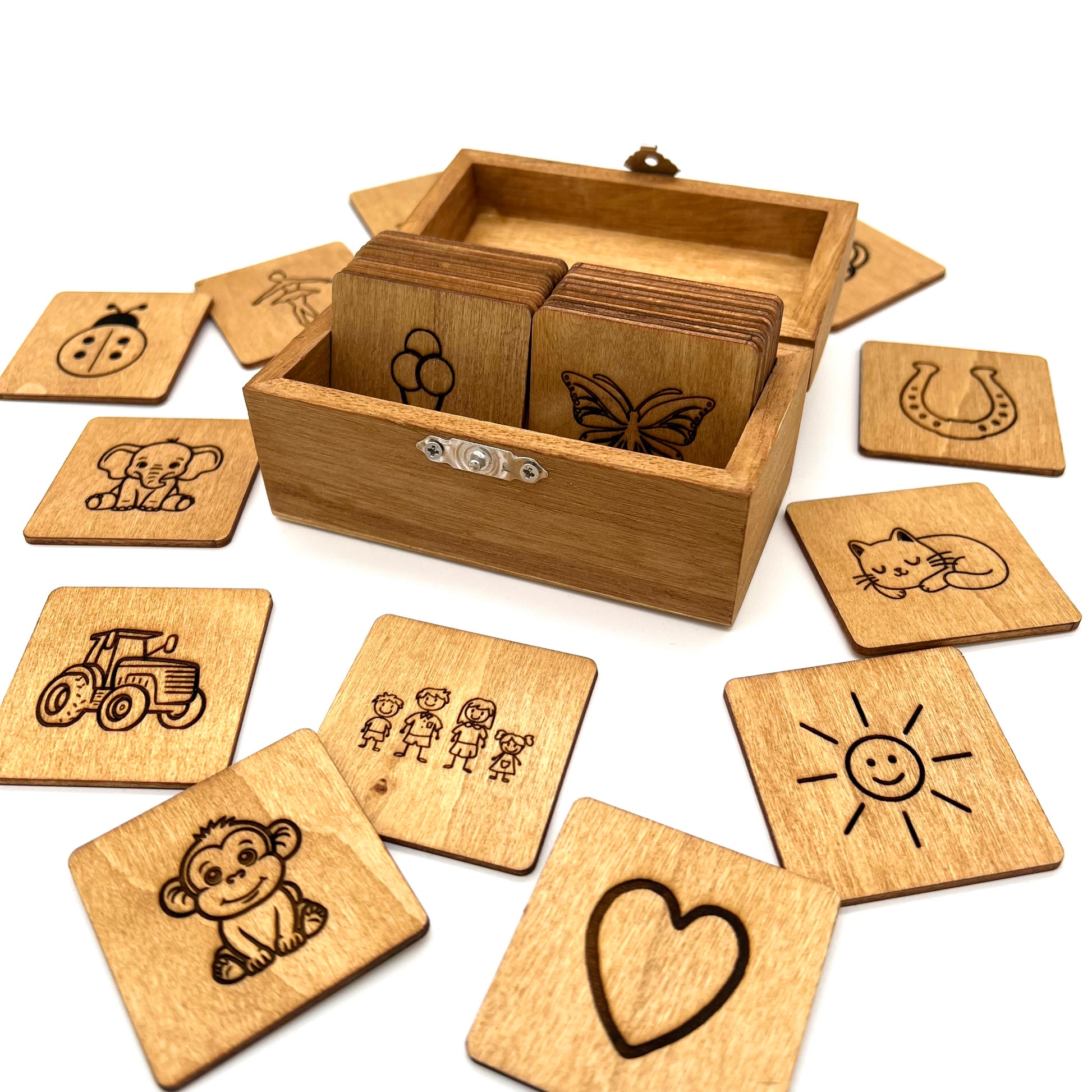 Entdecken Sie das handgefertigte Doppelgänger-Spiel aus Holz, das mit einer hochwertigen Wachslasur behandelt wurde. Jedes Stück ist ein Unikat und besticht durch seine natürliche Holzmaserung sowie die liebevolle Verarbeitung. Die 15 kindgerechten gelaserten Motive machen das Spiel zu einem echten Hingucker. Dieses Spiel fördert nicht nur das Gedächtnis, sondern bringt auch einen Hauch von Natur in Ihr Zuhause. Ideal als Geschenk oder für gemütliche Spielabende mit der Familie.