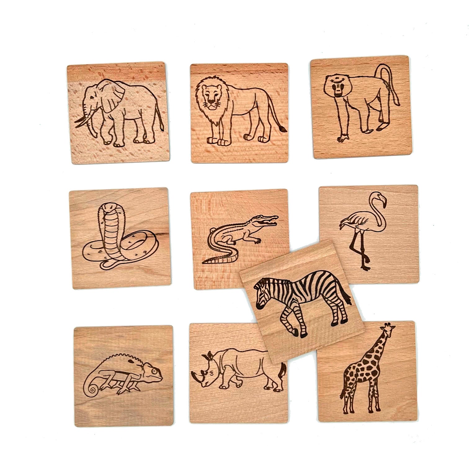 Entdecken Sie das handgefertigte Doppelgänger-Spiel aus unbehandelten Buchenholz Plättchen (ca. 7 x 7 cm). Die 10 gelaserten Tier Motive machen das Spiel zu einem echten Hingucker. Dieses Spiel fördert nicht nur das Gedächtnis, sondern bringt auch einen Hauch von Natur in Ihr Zuhause. Ideal als Geschenk oder für gemütliche Spielabende mit der Familie.