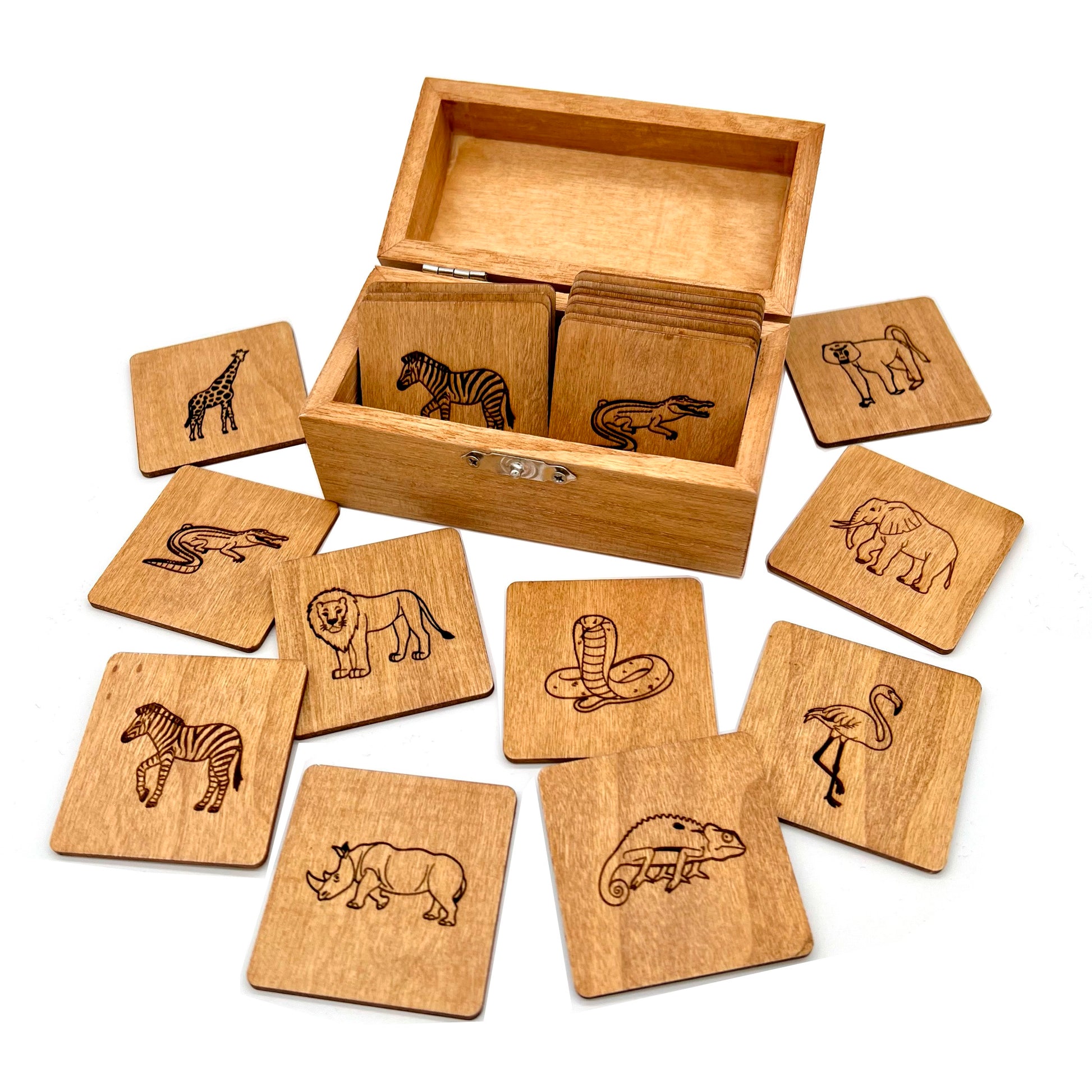 Entdecken Sie das handgefertigte Doppelgänger-Spiel aus Holz, das mit einer hochwertigen Wachslasur behandelt wurde. Jedes Stück ist ein Unikat und besticht durch seine natürliche Holzmaserung sowie die liebevolle Verarbeitung. Die 10 gelaserten Tier Motive machen das Spiel zu einem echten Hingucker. Dieses Spiel fördert nicht nur das Gedächtnis, sondern bringt auch einen Hauch von Natur in Ihr Zuhause. Ideal als Geschenk oder für gemütliche Spielabende mit der Familie.